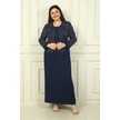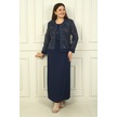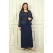 Kadın Boncuk Pul İşlemeli Tül Ceket Yarım Ay Kollu Uzun Elbise Astarlı Büyük Beden 2'li Takım Lacivert