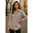 Kadın Bordo Çizgili Beyaz Oversize Gömlek Over Fit Relaxed Gömlek Çok Renkli
