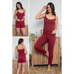 Kadın Bordo Renkli Dantel Detaylı Şortlu Ve Taytlı Pijama Takımı 3'lü Set 75018 Bordo