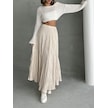 Kadın Buruşuk Modal Dokulu Soft Uzun Etek Ekru