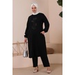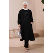 Tesettür İkili Takım Uzun Tunik Bol Paça Pantolon 4006-siyah Siyah