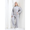 Kadın Büyük Beden Fermuarlı Uzun Kollu Rahat Günlük Eşofman Takım Gri