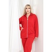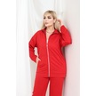 Kadın Büyük Beden Fermuarlı Uzun Kollu Rahat Günlük Eşofman Takım Kırmızı