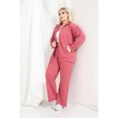 Kadın Büyük Beden Fermuarlı Uzun Kollu Rahat Günlük Eşofman Takım Pembe