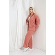Kadın Büyük Beden Fermuarlı Uzun Kollu Rahat Günlük Eşofman Takım Somon