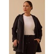 Kadın Büyük Beden Kapüşonlu Fermuarlı Kap - Siyah Siyah
