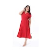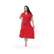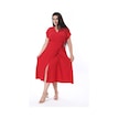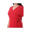 Kadın Büyük Beden Kırmızı Bürümcük Kumaş Beli Tokalı Anvelop Elbise 65n38314-kırmızı Kırmızı