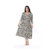 Kadın Büyük Beden Siyah Bürümcük Kumaş V Yakalı Kapri Kol Elbise 65n38206-siyah Siyah