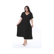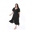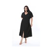 Kadın Büyük Beden Siyah Bürümcük Kumaş V Yakalı Ön Yırtmaçlı Elbise 65n38312-siyah Siyah