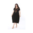 Kadın Büyük Beden Siyah Nakış Detaylı V Yakalı Kısa Kol Elbise 65n38203-siyah Siyah