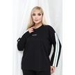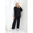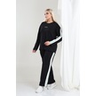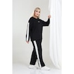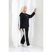 Kadın Büyük Beden Uzun Kollu Şerit Detaylı Oysho Tarzı Modal Kumaş Takım Siyah