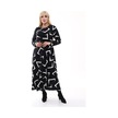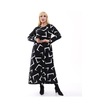 Kadın Büyük Beden Yumuşak Dokulu Siyah Geometrik Desen Elbise Siyah - Beyaz Geometrik