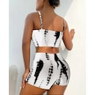 Kadın Büzgü Detay Askılı Crop Mini Tayt Ikili Takım Beyaz