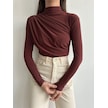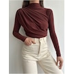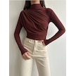 Kadın Büzgü Detaylı Dik Yaka Sandy Bluz Kahverengi
