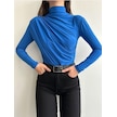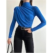 Kadın Büzgü Detaylı Dik Yaka Sandy Bluz Saks