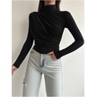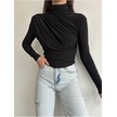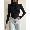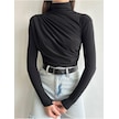 Kadın Büzgü Detaylı Dik Yaka Sandy Bluz Siyah