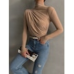 Kadın Büzgü Detaylı Dik Yaka Sandy Bluz Vizon