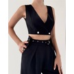 Kadın İspanyol Paça Pantolon Uzun Kollu Parmak Geçirmeli Crop Takım Gri