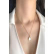 Kadın Çelik Kolye Zirkon Taş Çerçeve Sedef Mineli Damla Kolye Altın