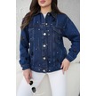 Kadın Cep Detaylı Tasarım Kot Ceket Mavi