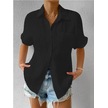 Kadın Cep Gömleği Düz Renk Günlük Yaka Gömleği Dikey Çizgili Üst Siyah