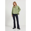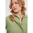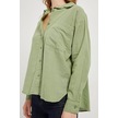Kadın Cepli Flamlı Oversize Uzun Kol Müslin Keten Gömlek Çağla