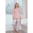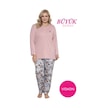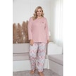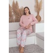 Kadın Çiçek Desen 3 Düğme Likralı Viskon Mevsimlik Büyük Beden Uzun Kol Pijama Takımı Pembe