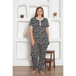 Kadın Çiçek Desen Bisiklet Yaka 3 Düğmeli %100 Pamuk Penye İnce Yazlık Kısa Kol Pijama Takımı Siyah