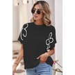 Kadın Çiçek Detaylı Triko Bluz Siyah