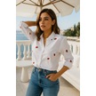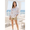 Kadın Çilek Desenli Beyaz Pamuk Gömlek Ekru