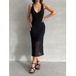 Kadın Çizgili Askılı Ajurlu Yazlık Triko Elbise Siyah