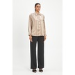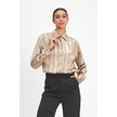 Kadın Çizgili Gömlek - Klasik Yaka Ve Düğme Detaylı Modern Tasarım Bej