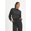 Kadın Çizgili Gömlek - Klasik Yaka Ve Düğme Detaylı Modern Tasarım Siyah
