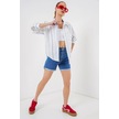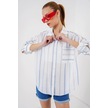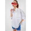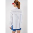 Kadın Çizgili Oversize Gömlek 20278 - Beyaz Beyaz