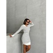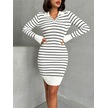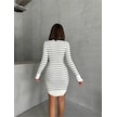 Kadın Çizgili Polo Yaka Mini Triko Elbise Beyaz