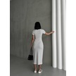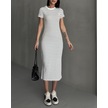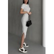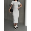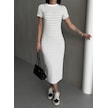 Kadın Çizgili Yırtmaçlı Esnek Uzun Örme Elbise Beyaz