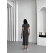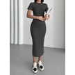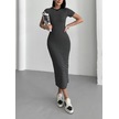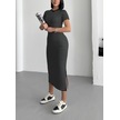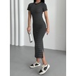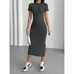 Kadın Çizgili Yırtmaçlı Esnek Uzun Örme Elbise Siyah
