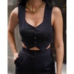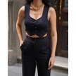 Kadın Crep V Yaka Yelek Ve Pantolon Takım Siyah