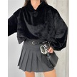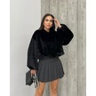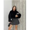 Kadın Crop Boy Yumuşacık Balon Uzun Kol Kapüşonlu Şık Kısa Sweatshirt Siyah