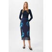 Kadın Dania Astarlı Bel Lastikli Şifon Mavi Midi Kalem Etek Mavi