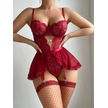 Kadın Dantel & File Jartiyer Takım Siyah / Kırmızı / Bordo Bordo