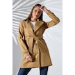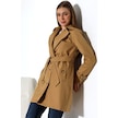 Kadın Degaje Kuşaklı Yarım Boy Astarlı Uzun Kollu Döğmeli Trençkot Camel CAMEL
