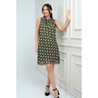Kadın Degaje Yaka Astarlı Desenli Kısa Şifon Elbise-41737 Haki