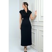 Kadın Degaje Yakalı Toka Detaylı Likralı Uzun Elbise-41755 Siyah