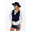 Kadın Denim Yelek Şık Düğmeli Jean Yelek, Günlük Ve Casual Kombin Koyu Mavi