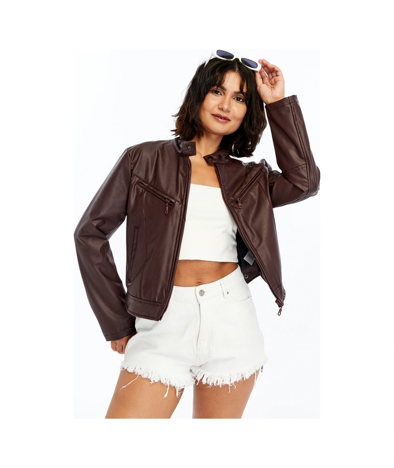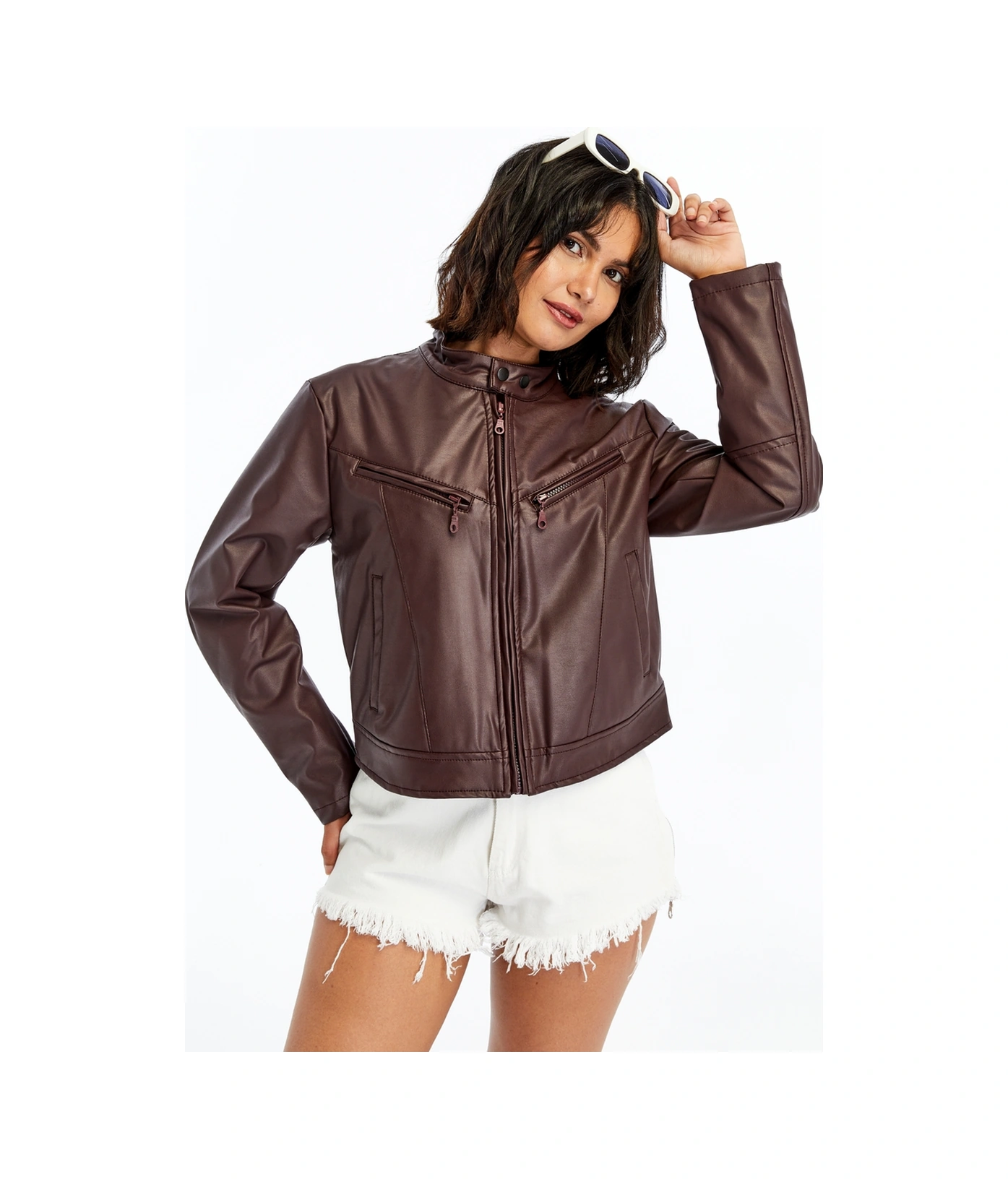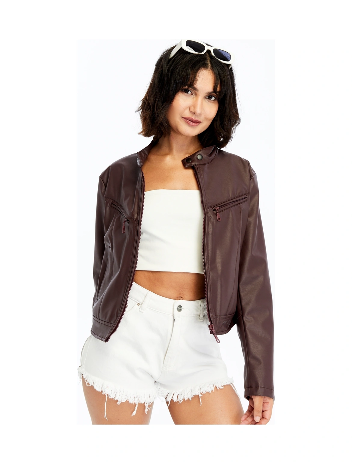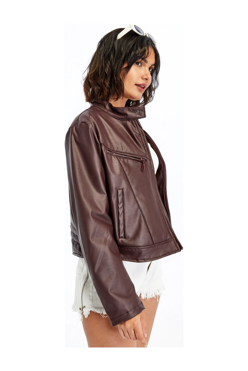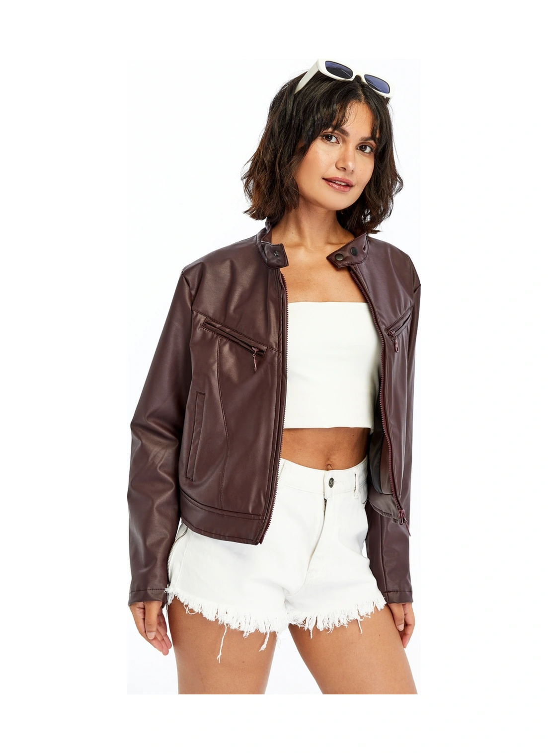 Kadın Deri Ceket Niş Kompakt Tasarım Mont Günlük Kullanım Fermuar Hakim Yaka Şık Ceket Bordo