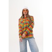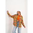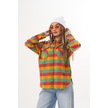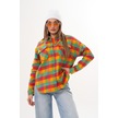 Kadın Desen Bloklu Oduncu Oversize Bol Ve Geniş Kalıp Casual Cepli Yakalı Ceket Gömlek Sarı