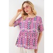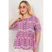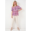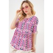 Kadın Desenli Kısa Kol Bluz 969 - Fuşya FUŞYA