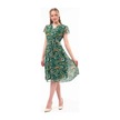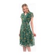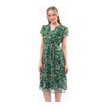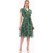 Kadın Desenli Kruvaze Yaka Midi Şifon Elbise 4445/110 Zümrüt Yeşili