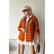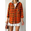 Kadın Desenli Renkli Oduncu Oversize Bol Ve Geniş Kalıp Casual Çift Kapüşonlu Ceket Gömlek Turuncu
